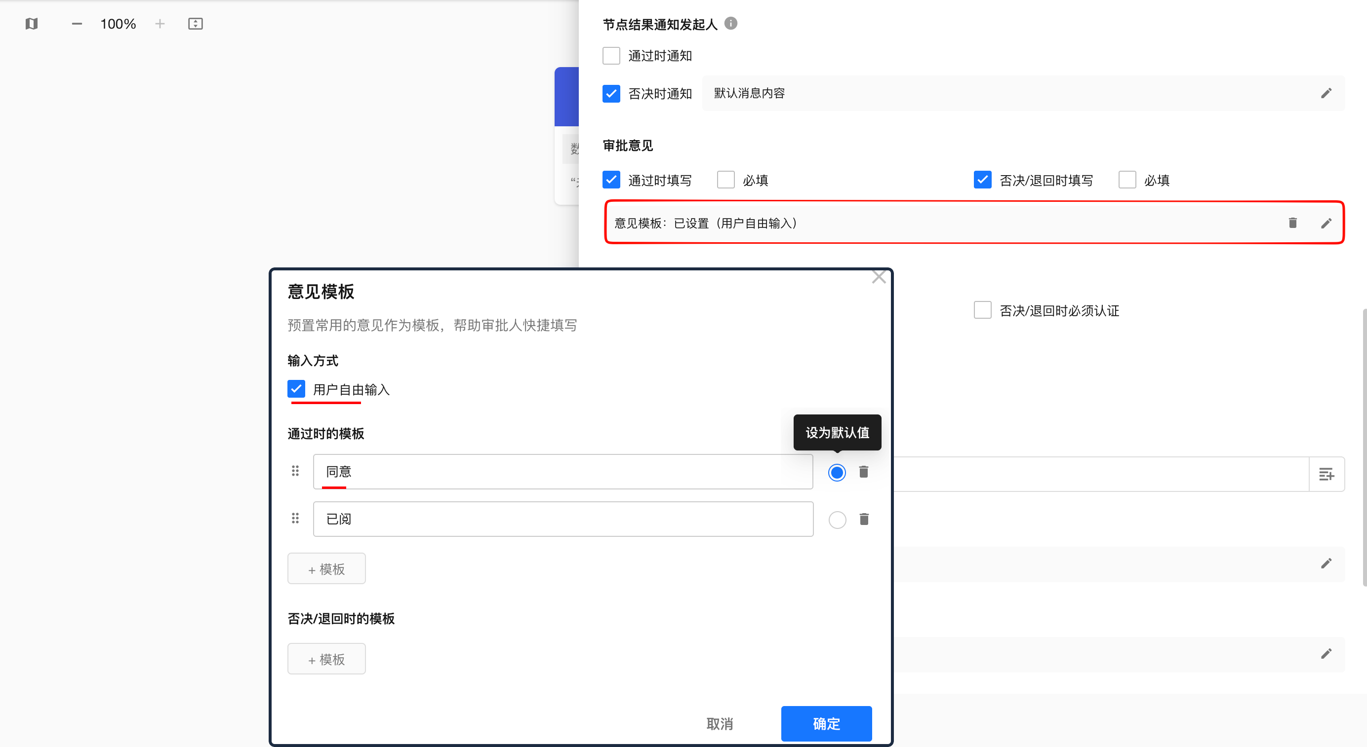 • 设置审批人在审批时操作权限;