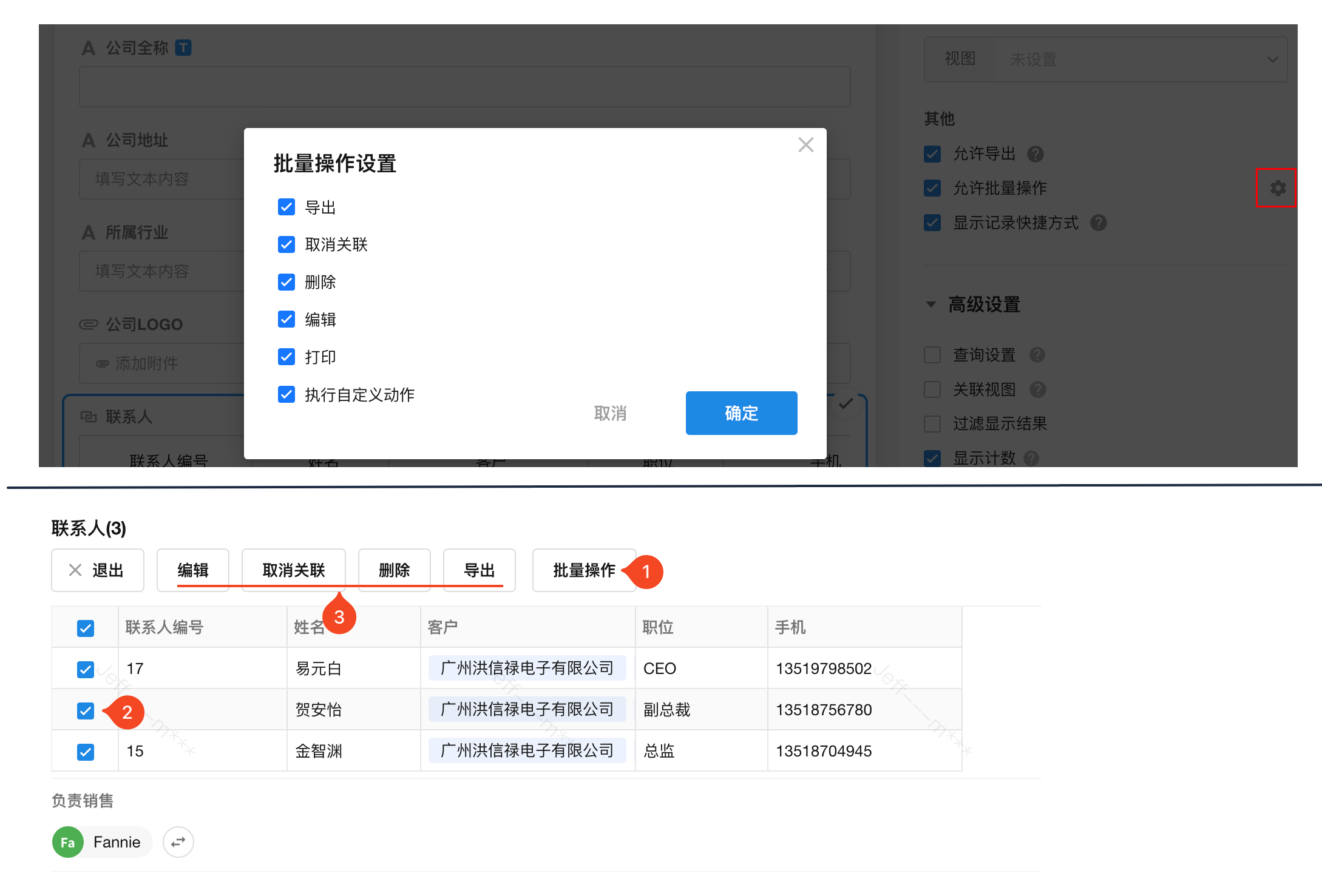 快速配置(场景示例:客户表关联联系人表)