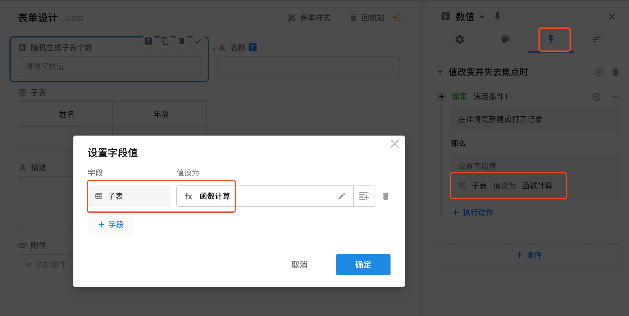 子表中某个字段修改后,通过函数自动修改子表其他字段的值