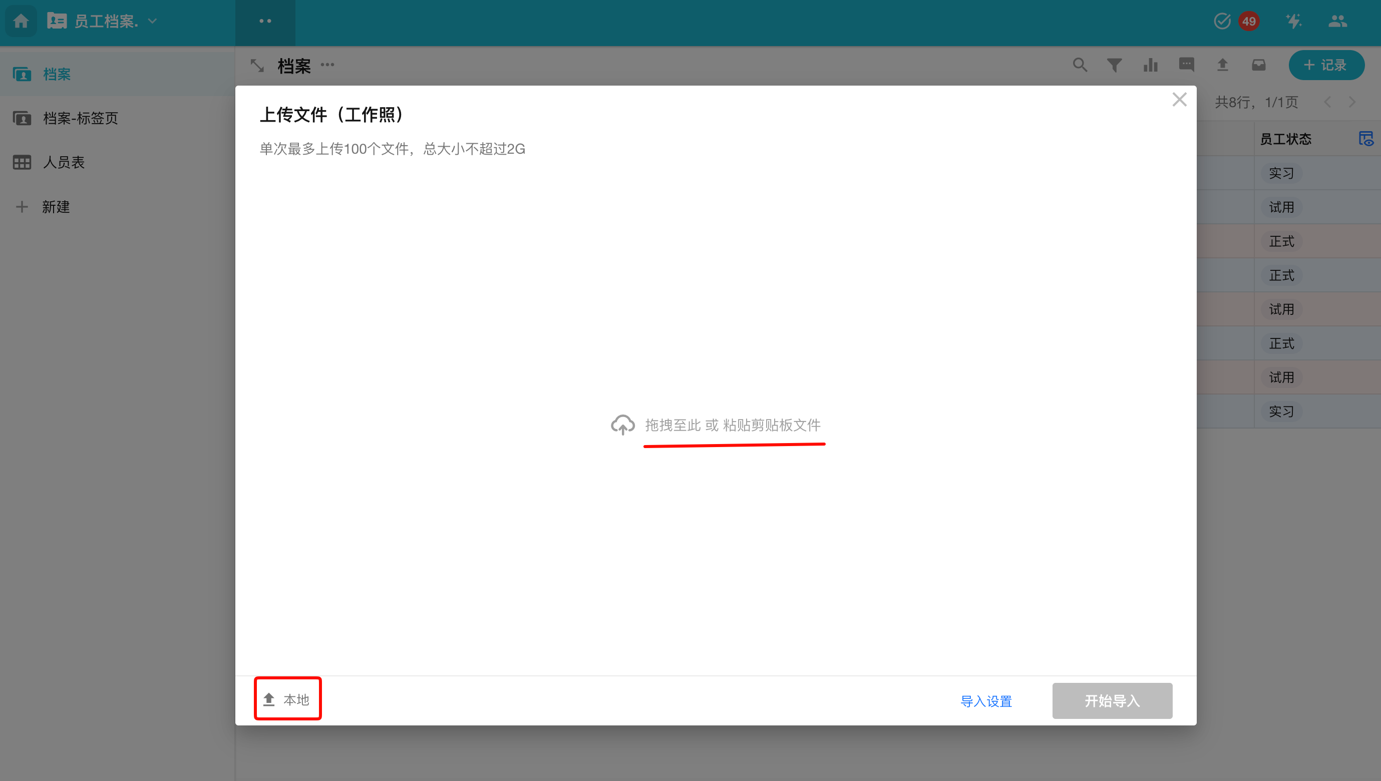 支持选择文件、整个文件夹上传或从剪贴板直接粘贴。上传完成后,点击 【开始导入】。