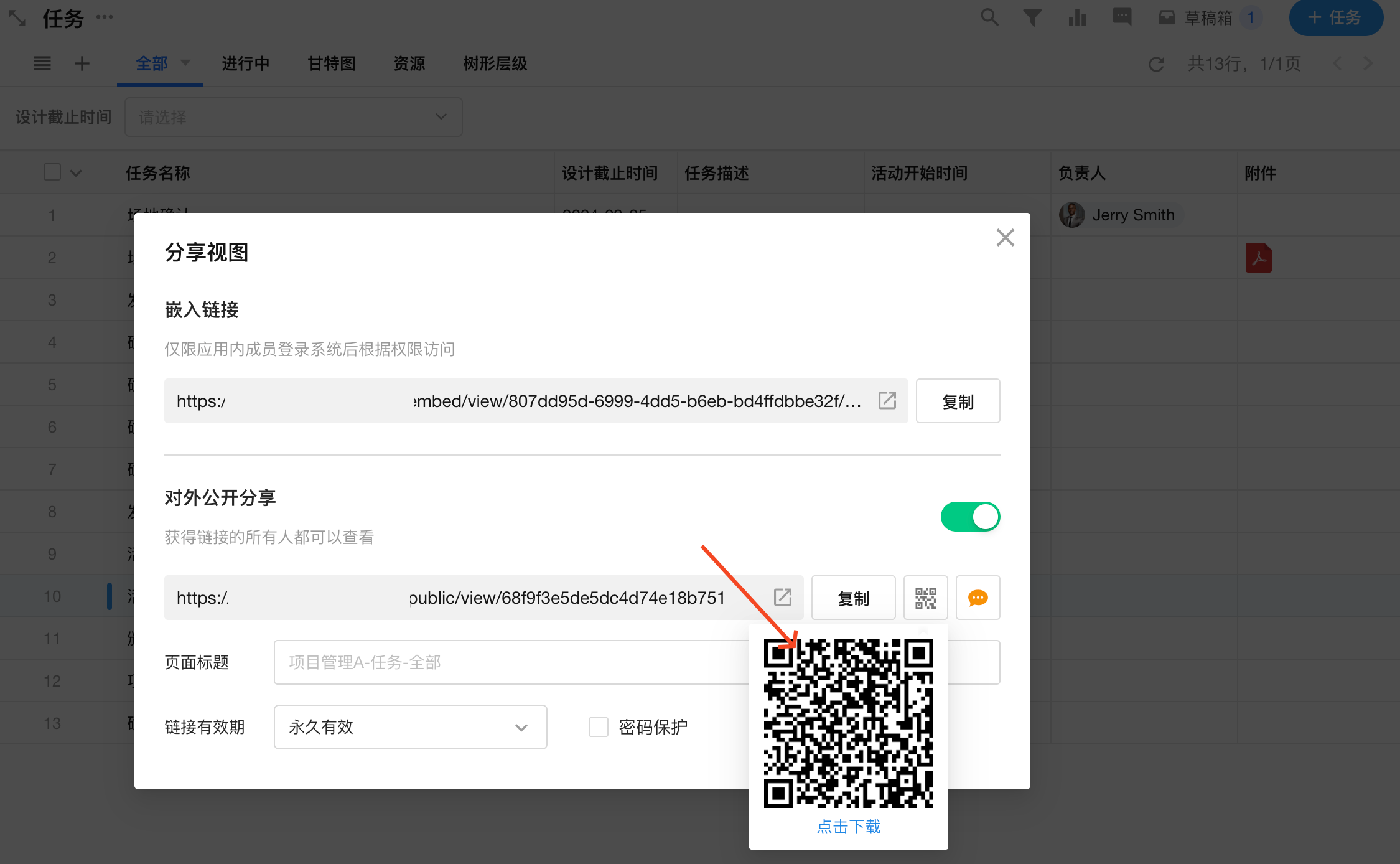 工作表的视图、记录支持对外分享,获得链接的所有人都可以查看视图数据和记录详情。