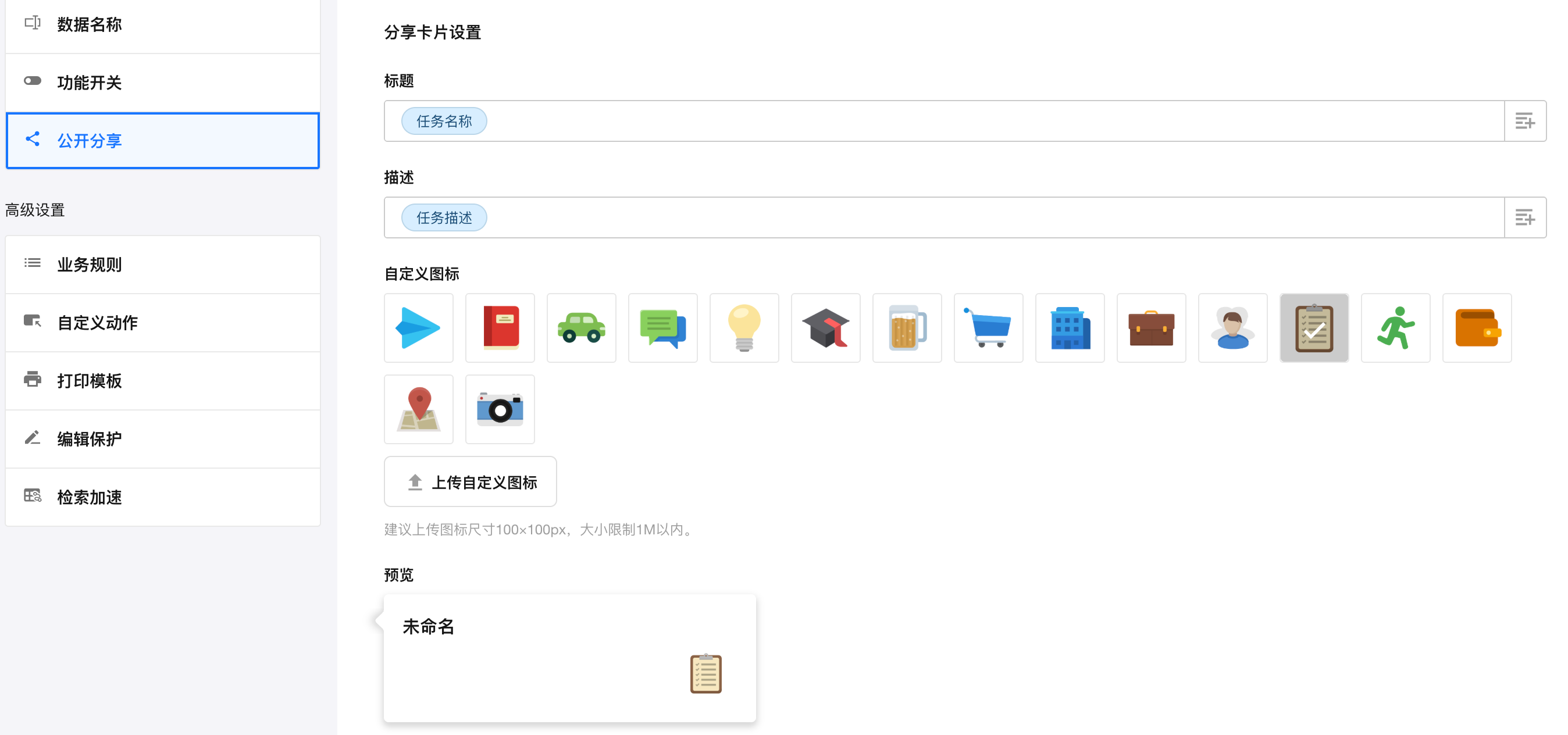 • 自定义图标:默认取视图的icon;可以上传自定义
