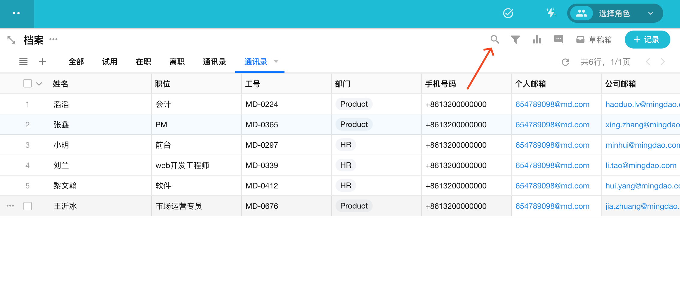 搜索会遍历记录中的所有可搜索字段;任一字段命中关键词,即返回该记录。