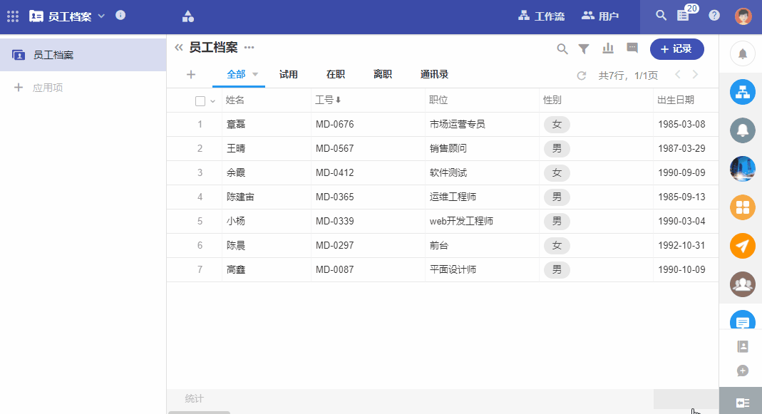 对视图下可见的记录的列(字段)进行数据统计,统计方式会记住,刷新后不变。