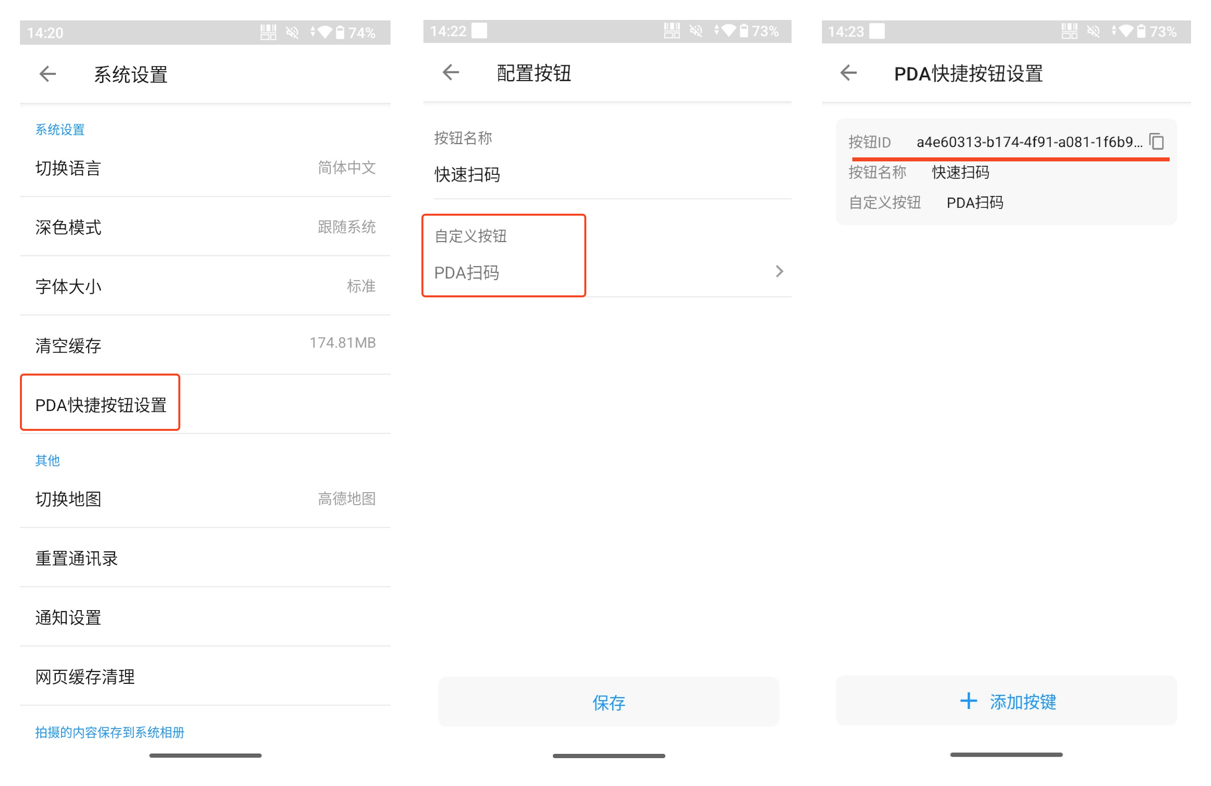 按键启动应用: PDA 支持设置按钮启动应用,并携带参数,APP 接收参数后,执行后续事件。