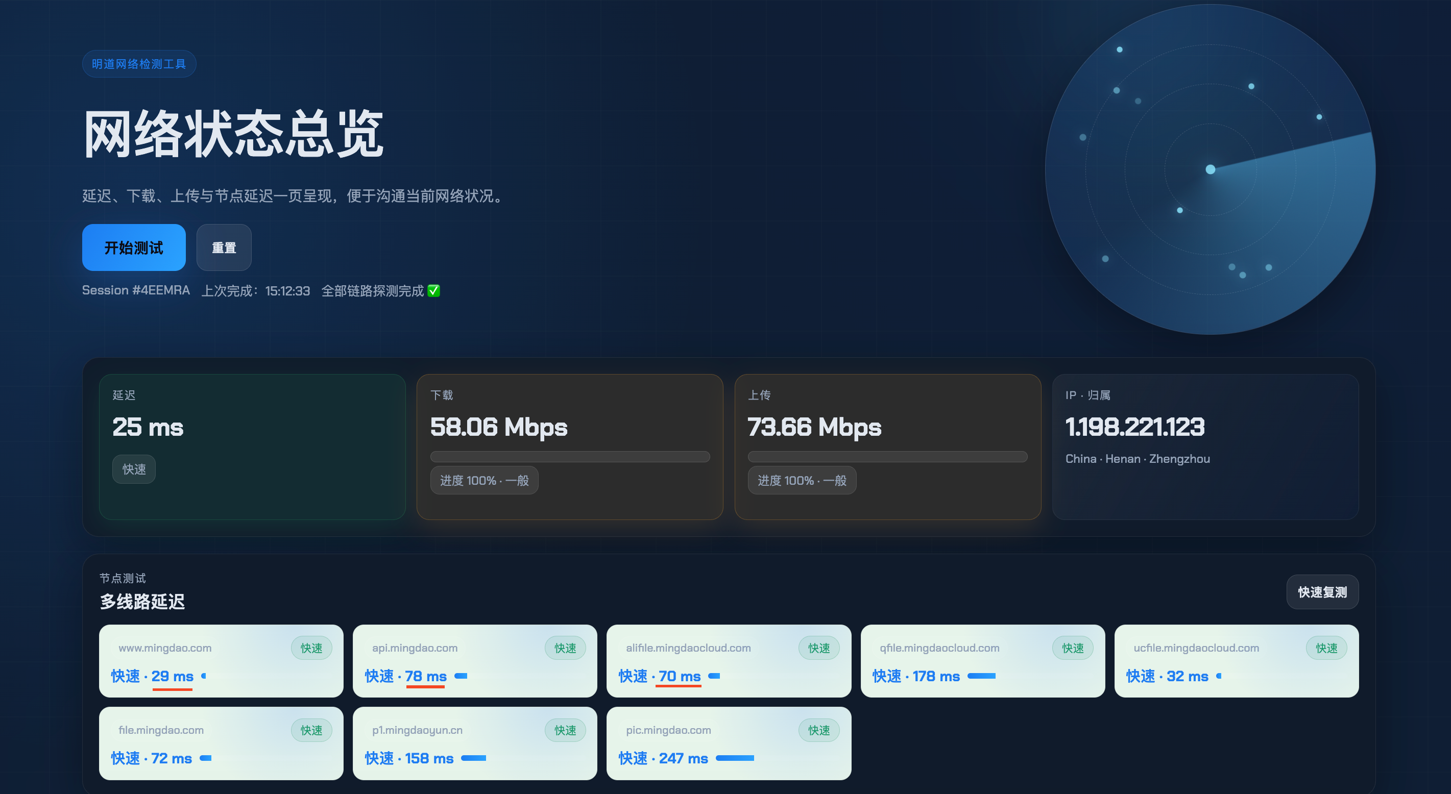如果网速符合要求,通过访问 https://webtest.mingdao.com  测试与HAP的连接延迟。