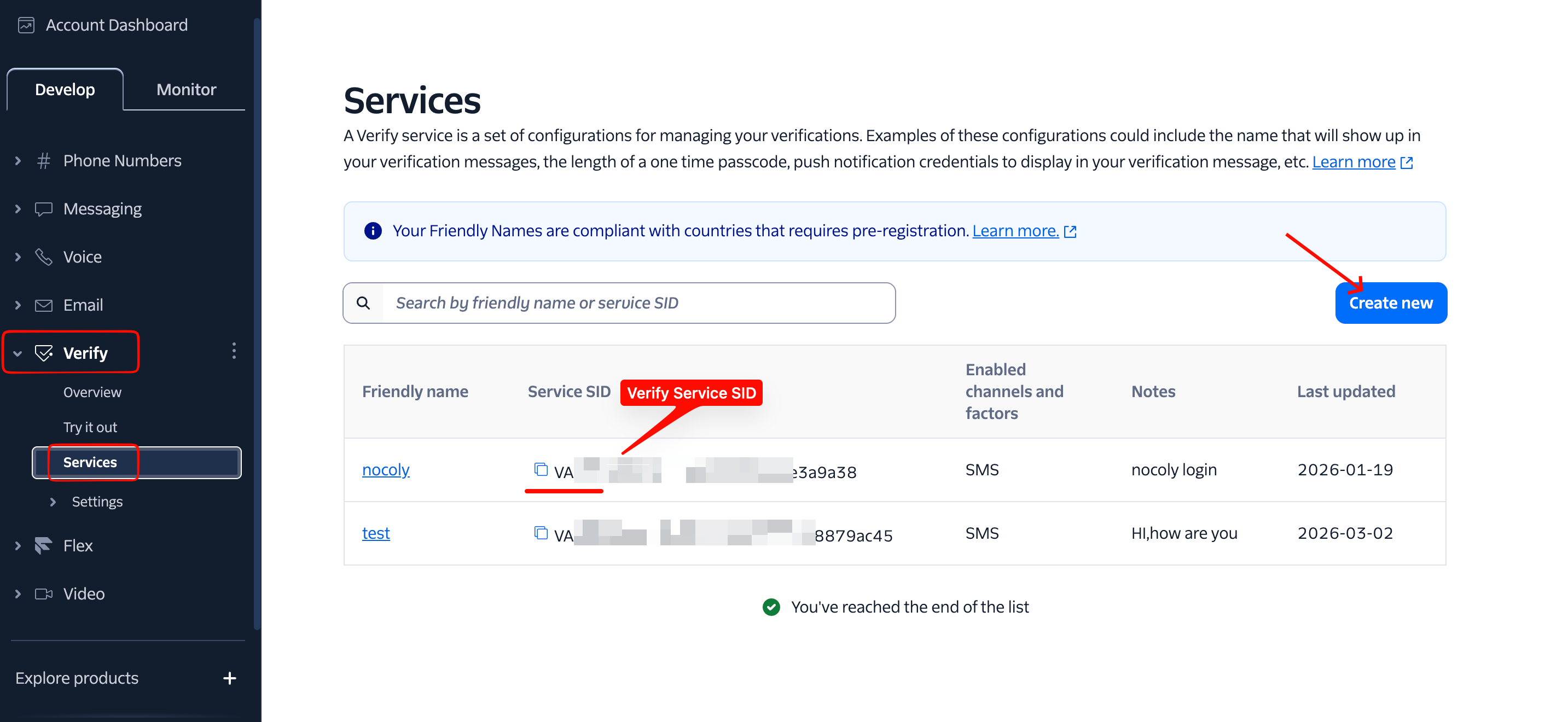 3. 保存后,获取 Verify Service SID(以 VA 开头)