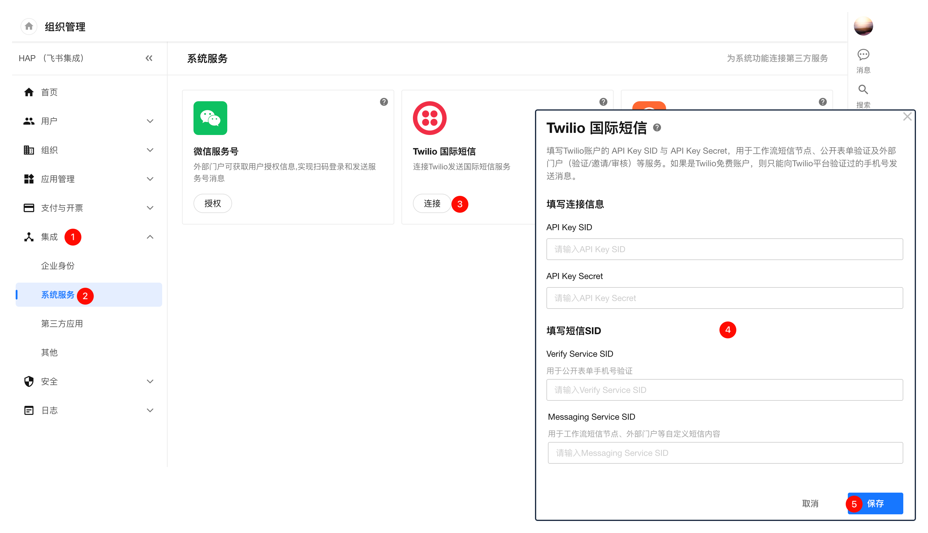 通过集成 Twilio,您可以为组织开启全球范围内的短信通知与验证码服务。