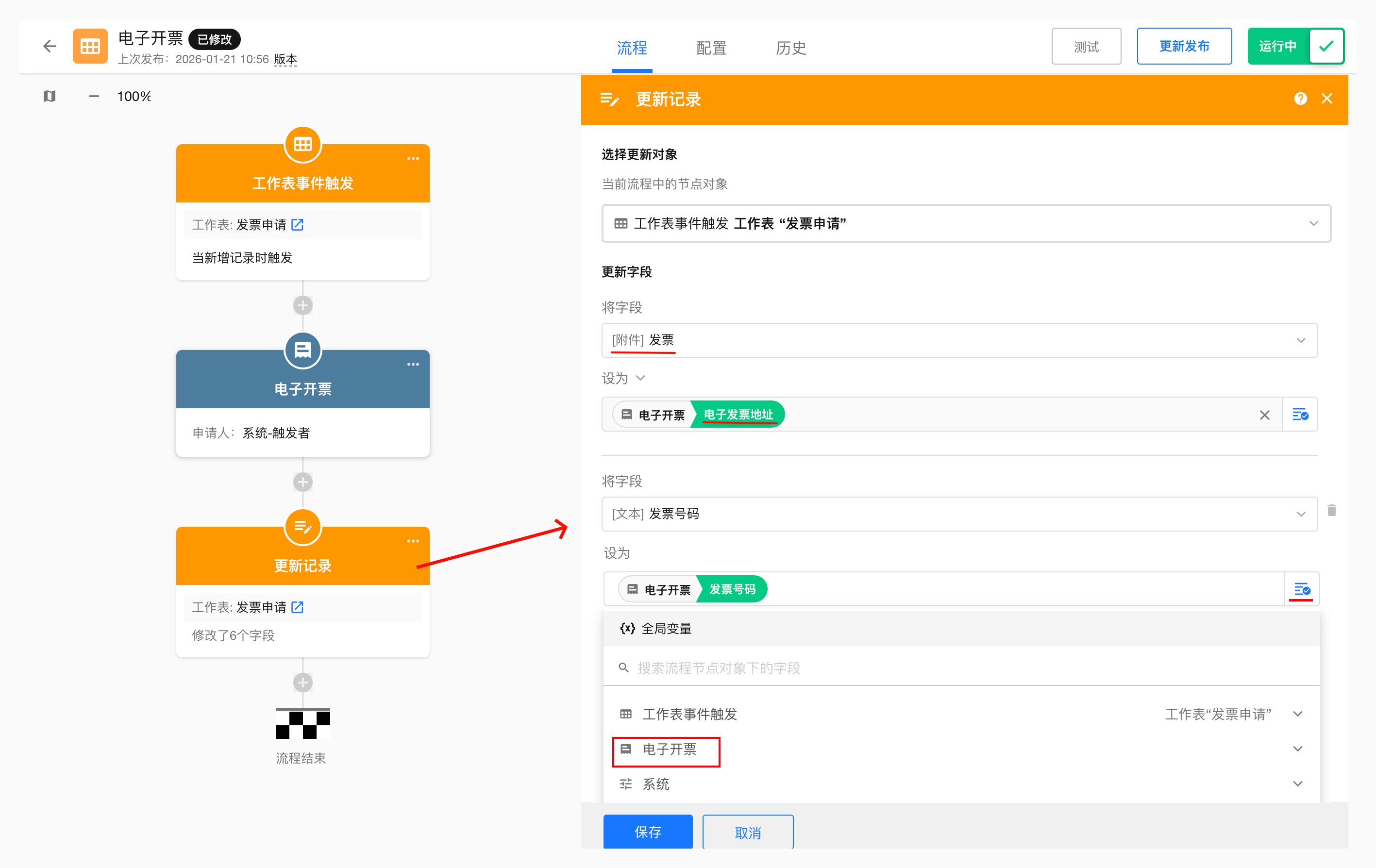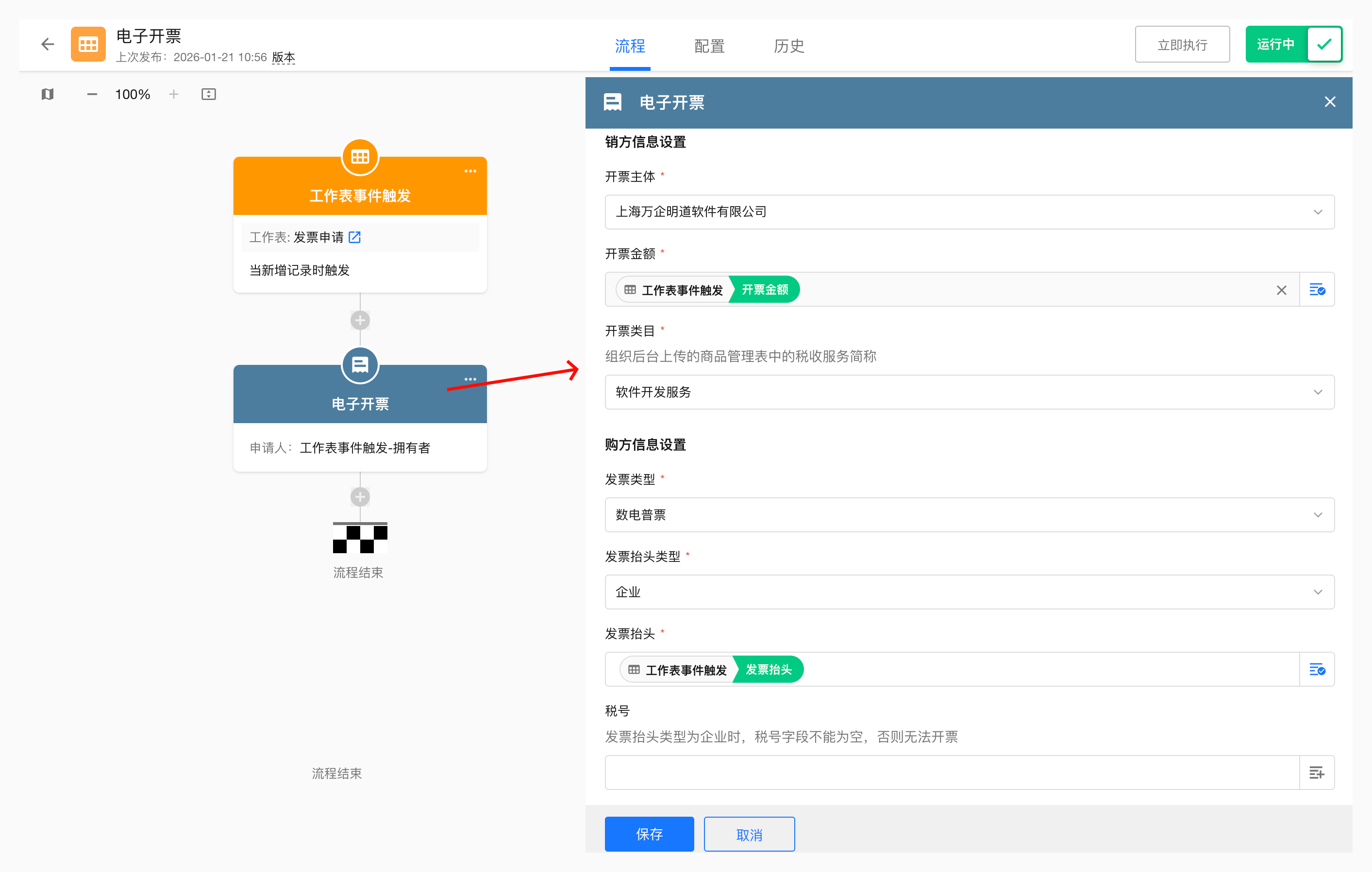 工作流中添加并配置电子开票节点
