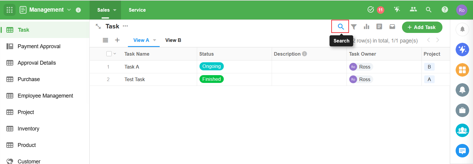 - 數字、金額欄位無法搜索,但可以篩選。