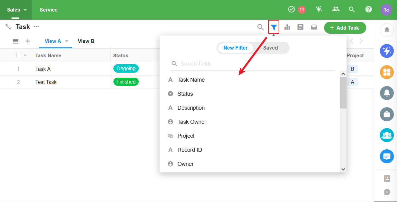 - 選擇類型欄位可以幫助快速篩選資料:如時間、成員、部門、地區/城市、單選、多重選擇等。