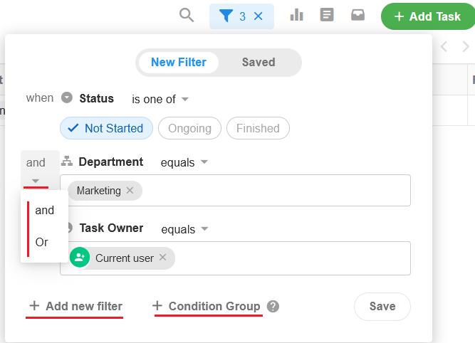每個使用者都可以自訂篩選器並保存以供以後使用。