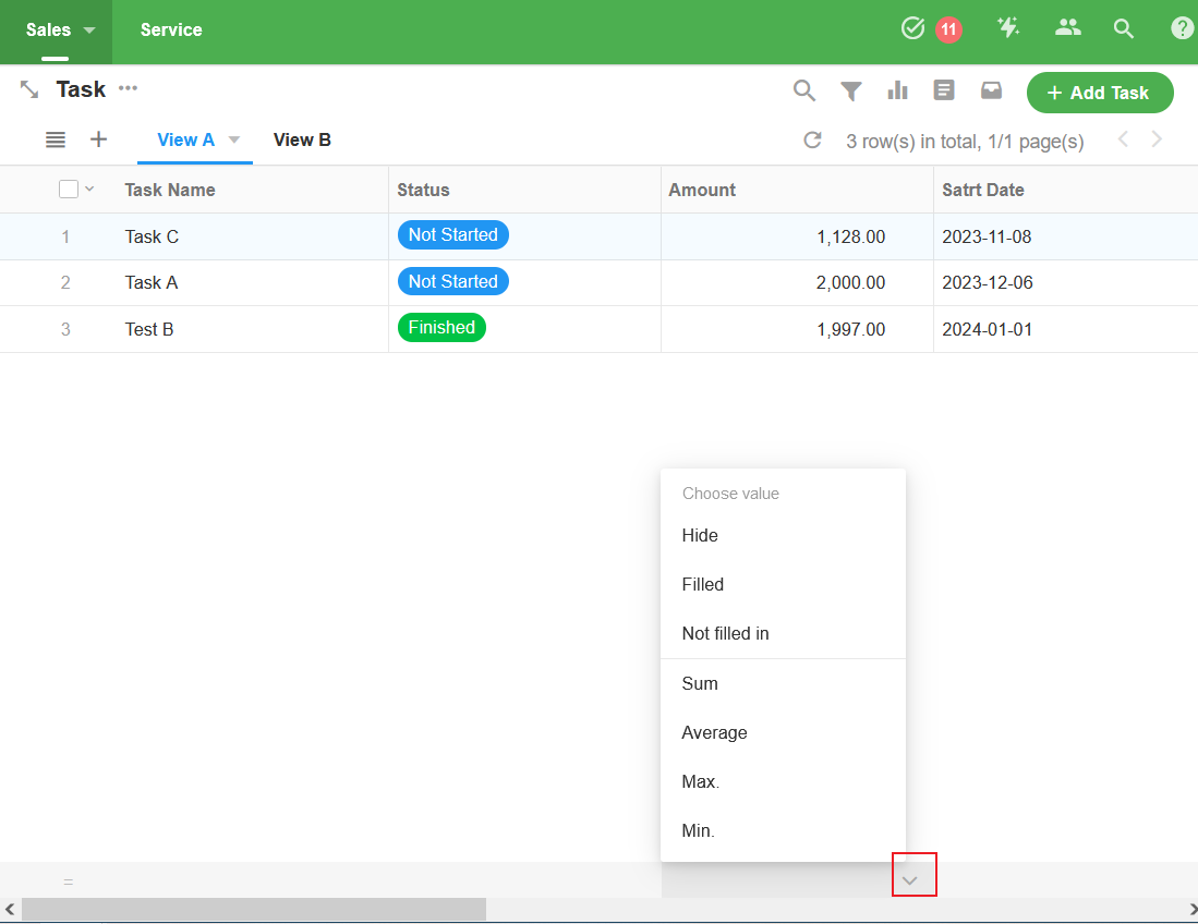 對於【數值】和【金額】等欄位:總和、最大值、最小值