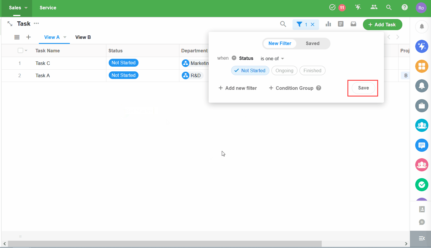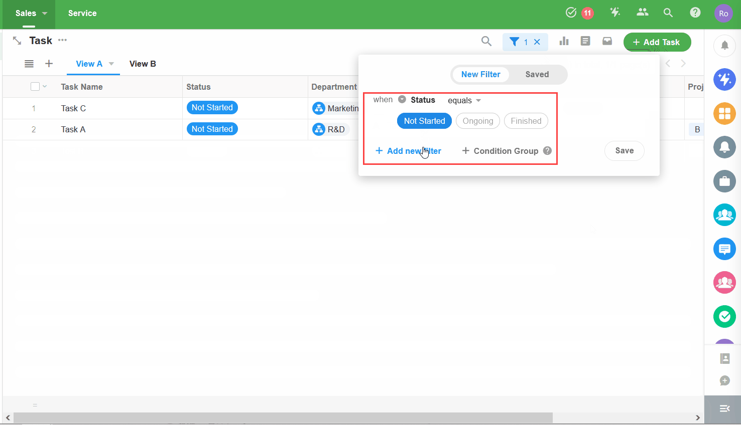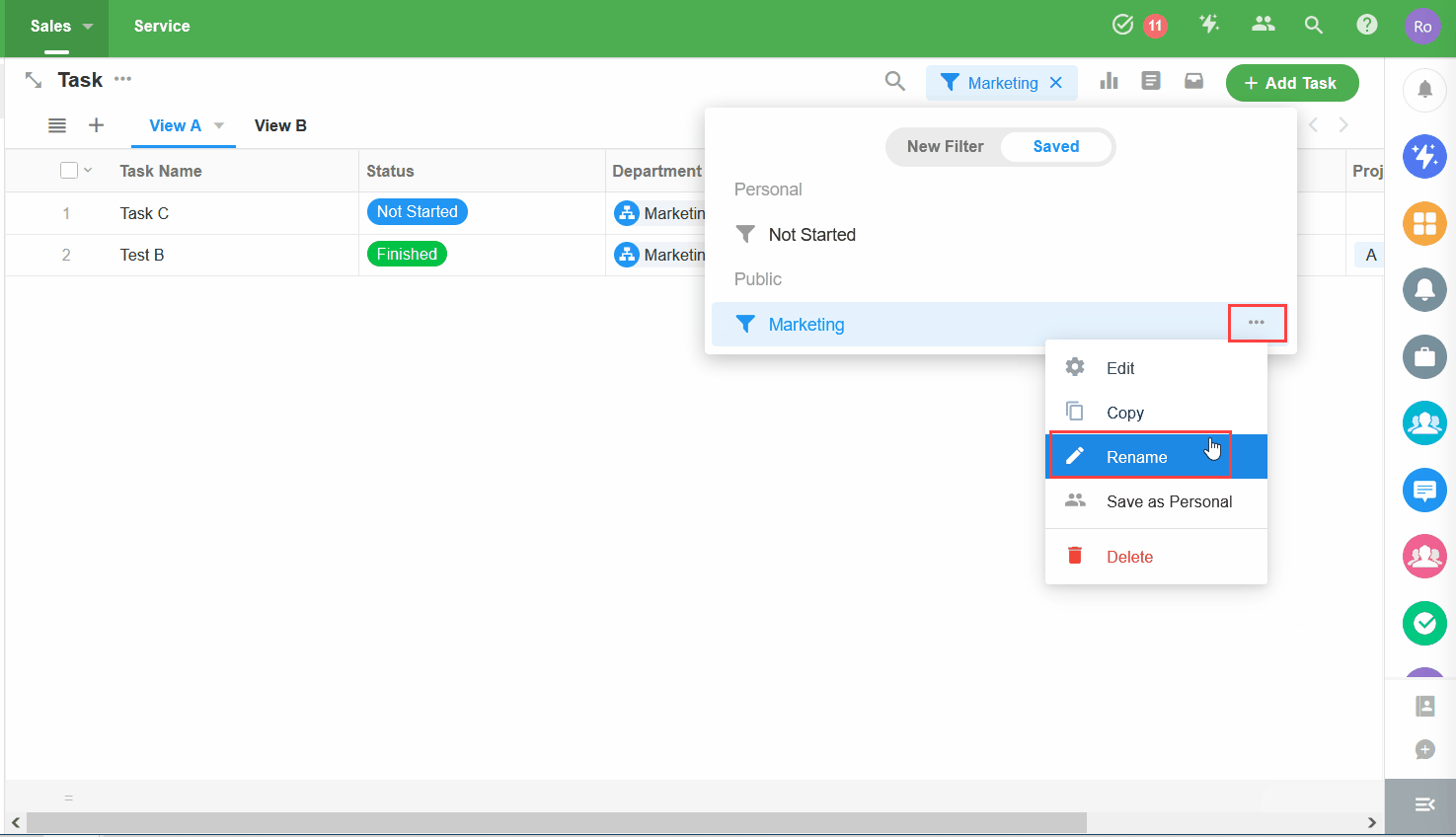 應用管理員創建的篩選器對工作表的所有成員都可見。工作表擁有者和成員可以修改篩選器,並可以將公共篩選器變更為個人篩選器(變更後,篩選器僅對創建者可見)。